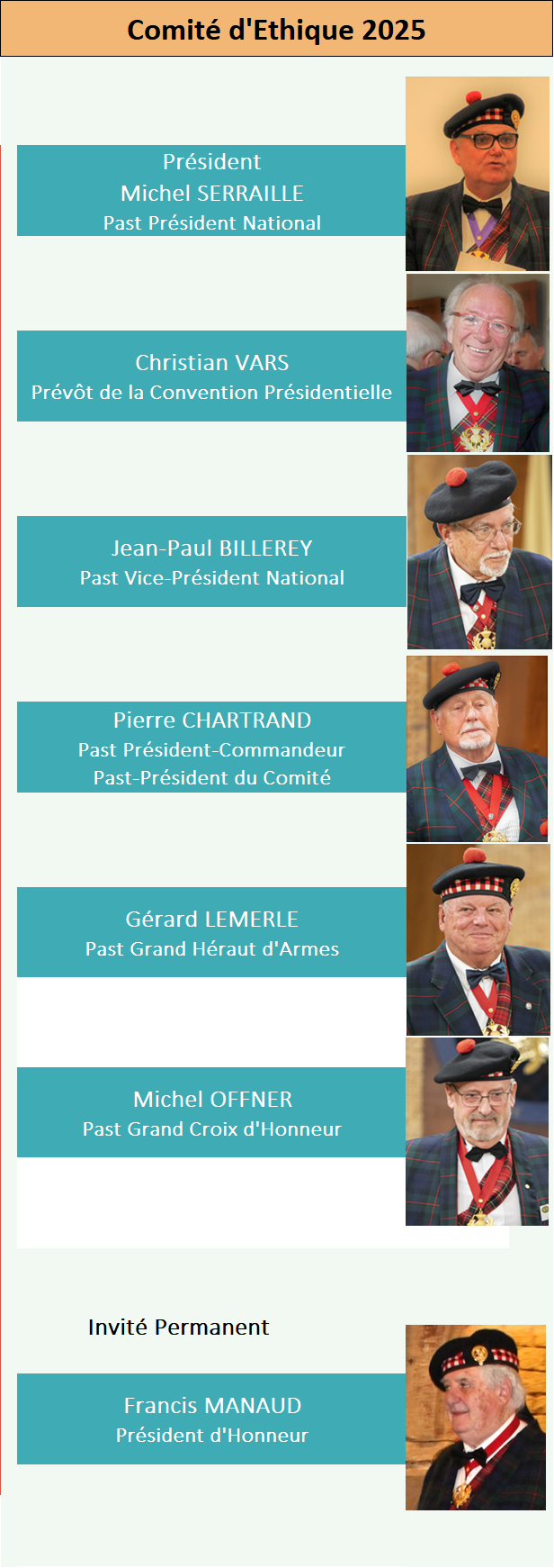 Peuvent accéder à ces fonctions, un représentant de la Convention Présidentielle et des "past hauts dignitaires" présentant une ancienneté dans la Confrérie suffisante au regard du Président du Comité.